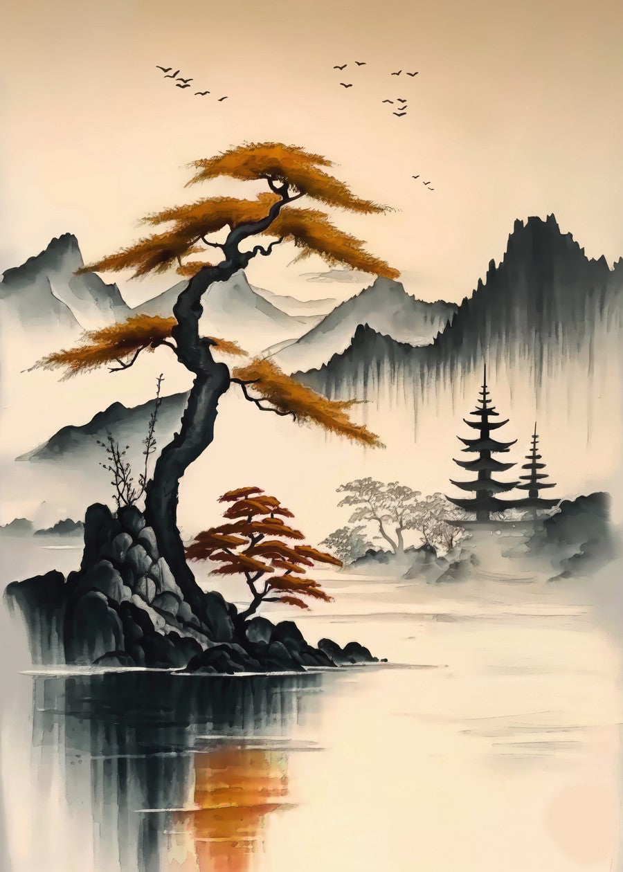 A Japanese tree Landscape sumi e