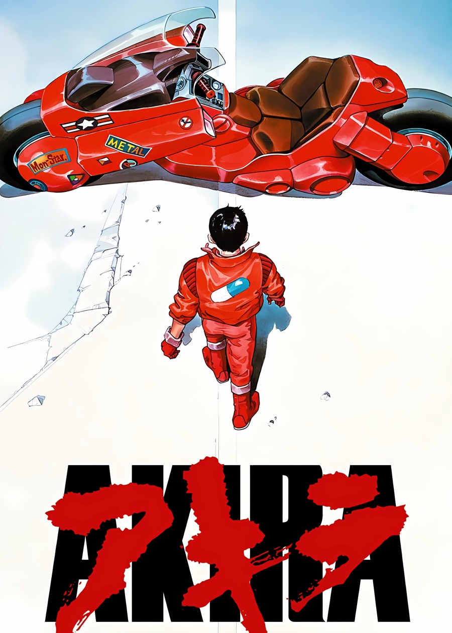 Kaneda walking to his iconic red motorcycle in classic Akira Neo Tokyo style