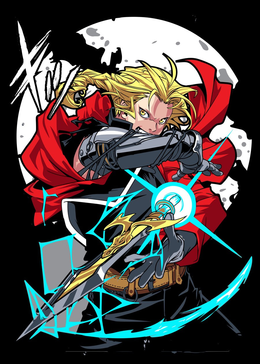 Edward Elric charges with alchemical power and blade in this bold Fullmetal Alchemist action shot.