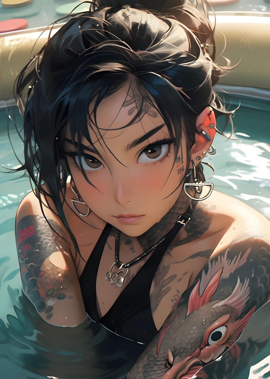 Anime girl swim in pool