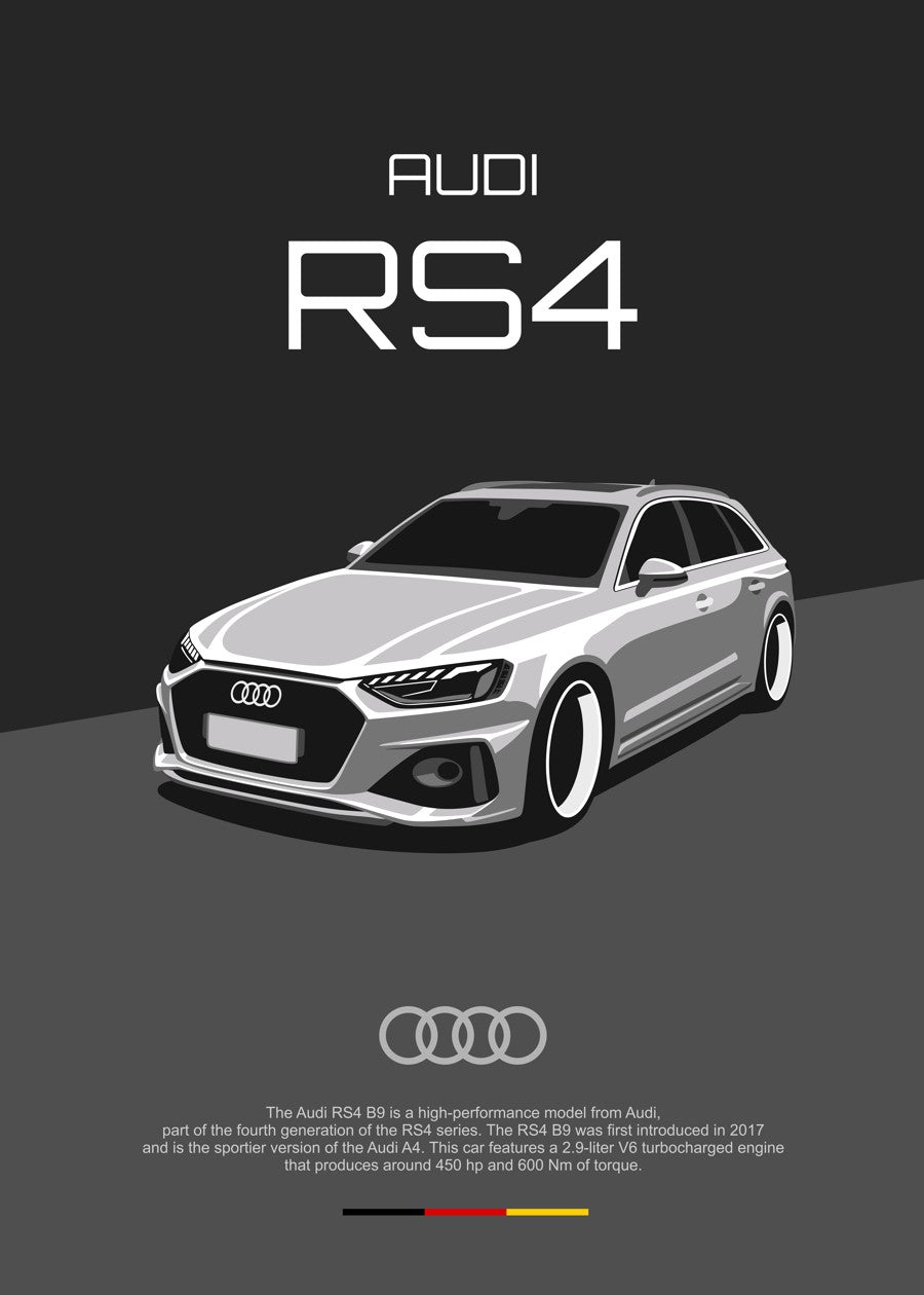 Audi RS4 B9, a modern wagon with high performance, powerful engine, aggressive design, and Audi RS’s signature premium comfort.
