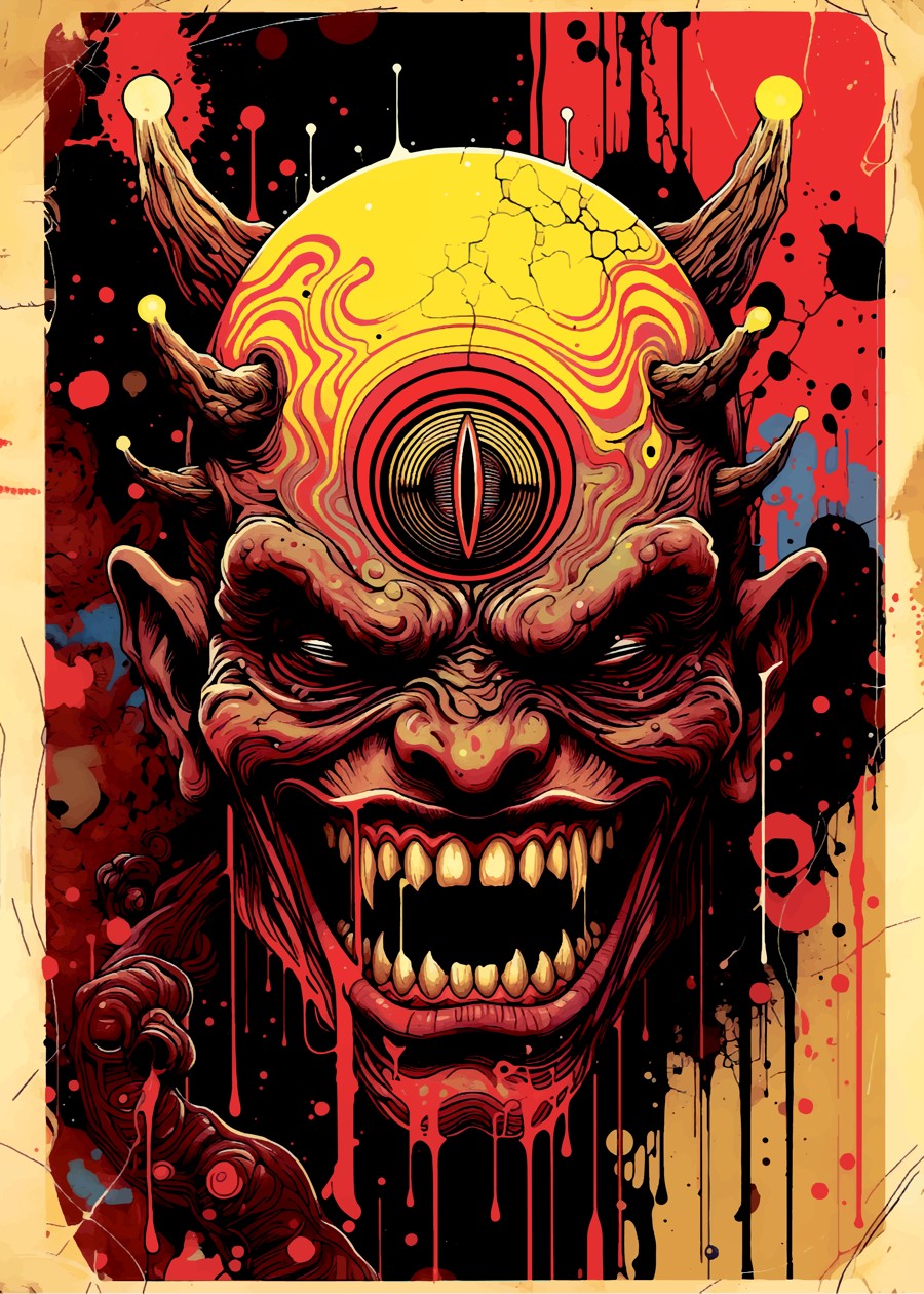 Illustration of a monster that has a larger head with a dominant yellow color that looks bright,