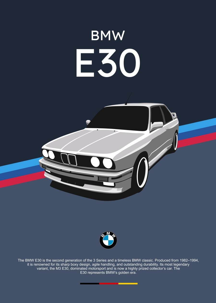 The classic BMW E30 with iconic design and sharp handling, a 3 Series legend still loved by sports car enthusiasts today.