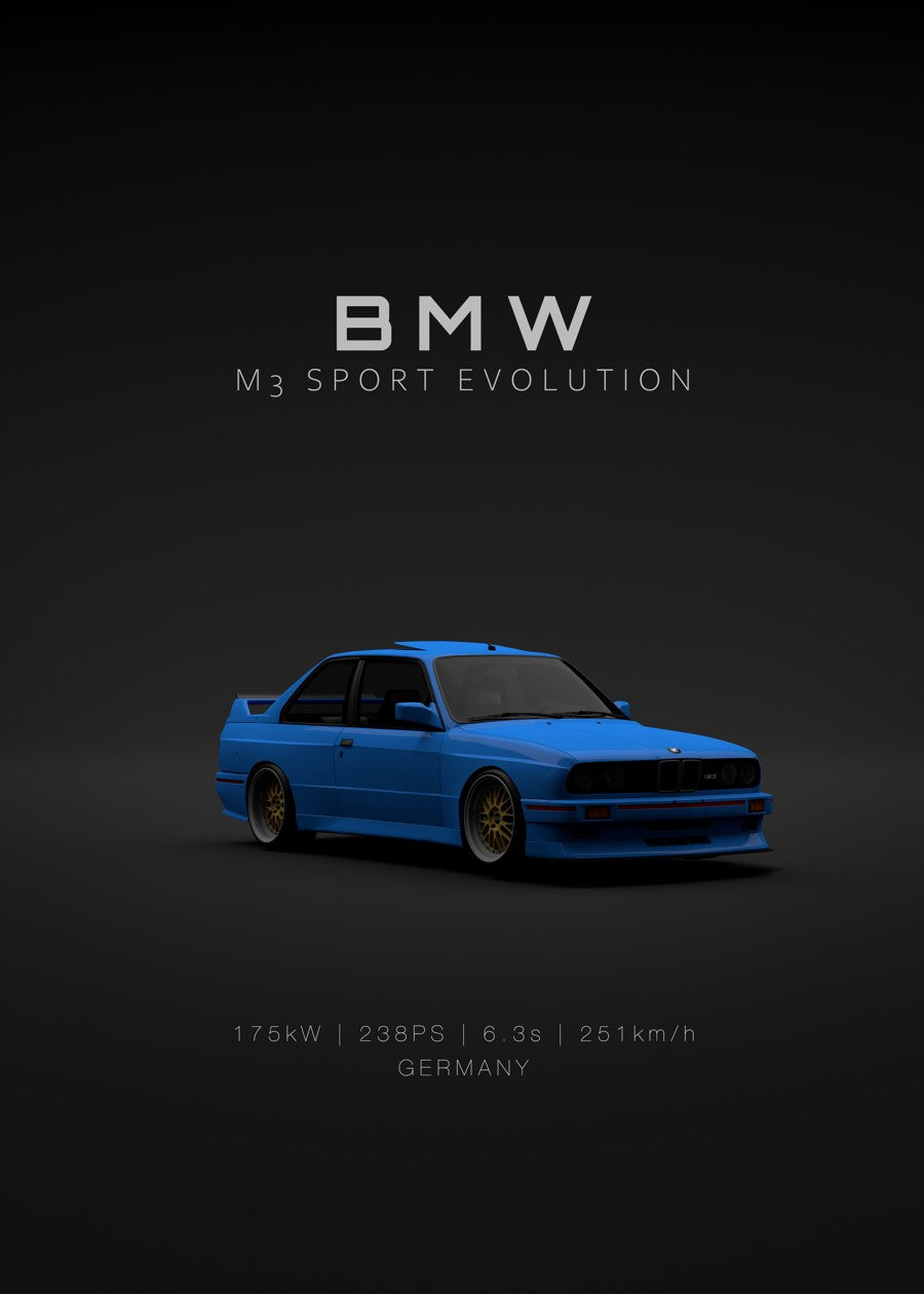 BMW M3 E30 Evo 3 Blue Front - Specs