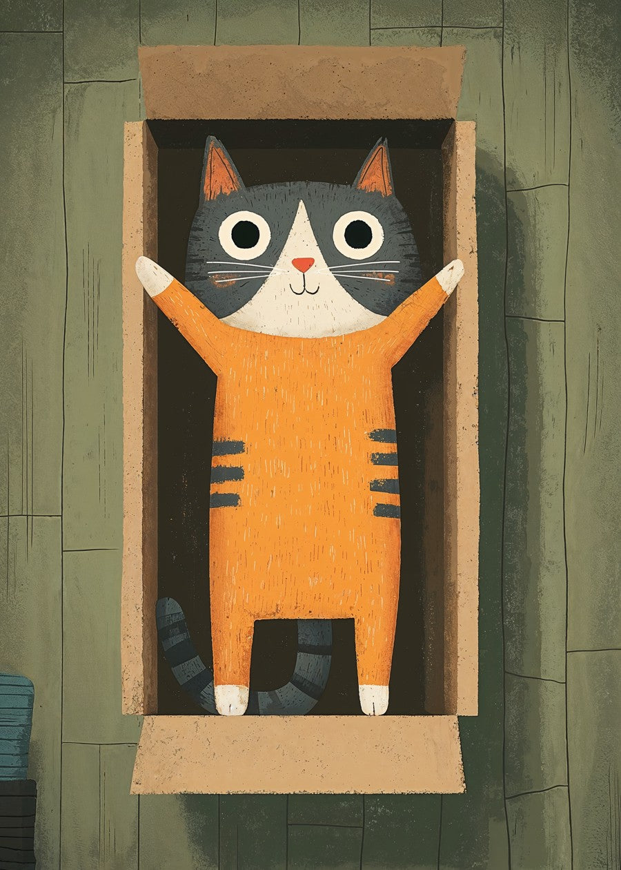 The ultimate box cat pose—arms up, heart full. This charming kitty proves once again: if it fits, it sits (and celebrates).