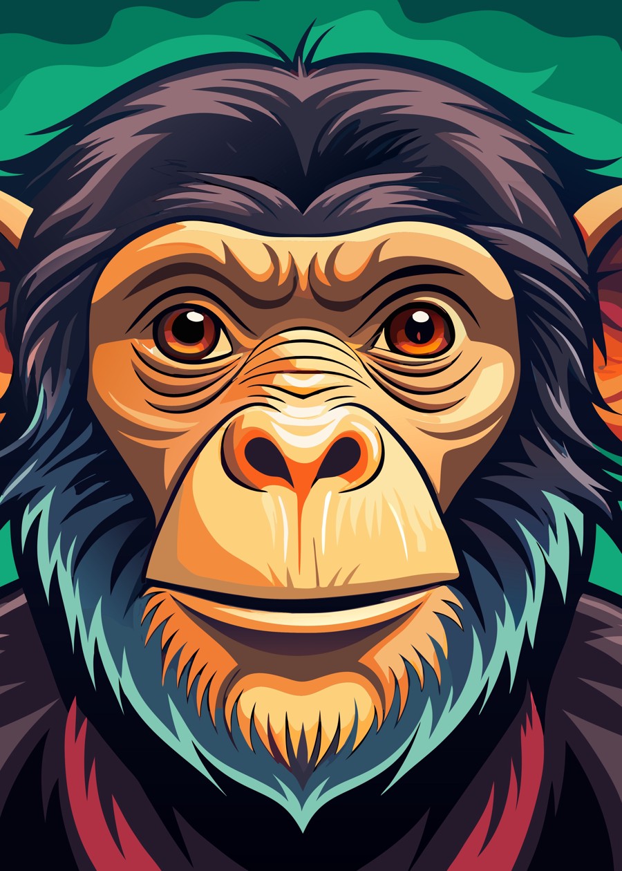 Add a touch of wilderness to your home with this premium chimpanzee metal poster.