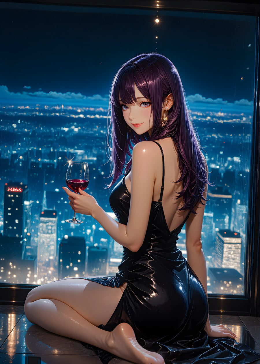 A serene moment with a view, a drink in hand, and the city as a backdrop.