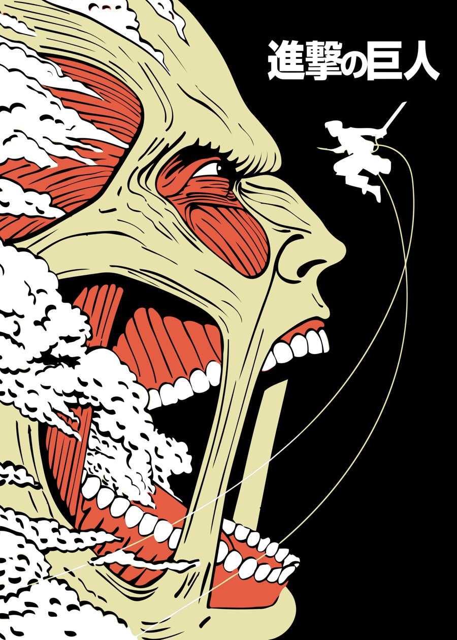 The Colossal Titan roars through the steam as a scout charges in—symbolizing humanity's defiance against overwhelming terror.