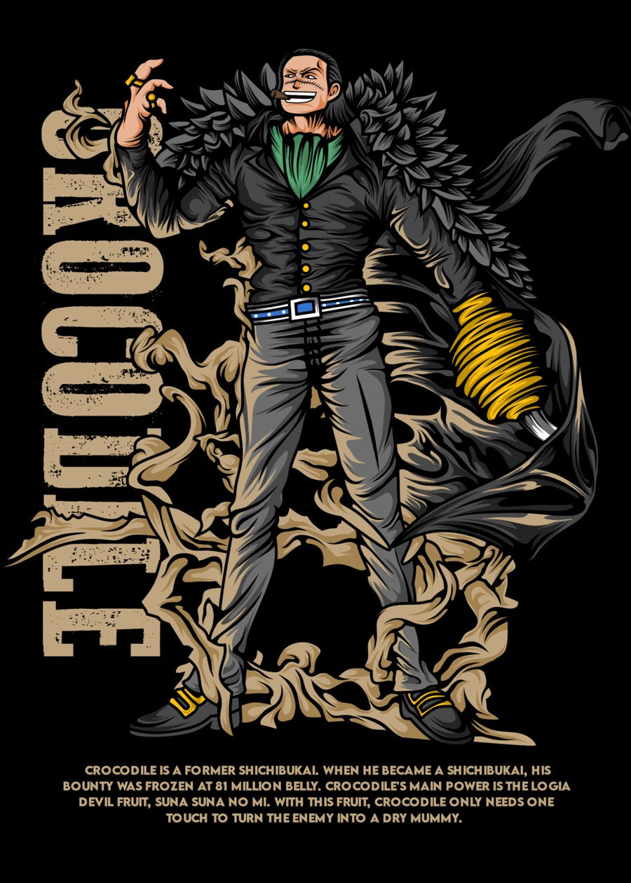Powerful Crocodile fan art with sand powers from the Suna Suna no Mi. A must-have for One Piece collectors and anime lovers!