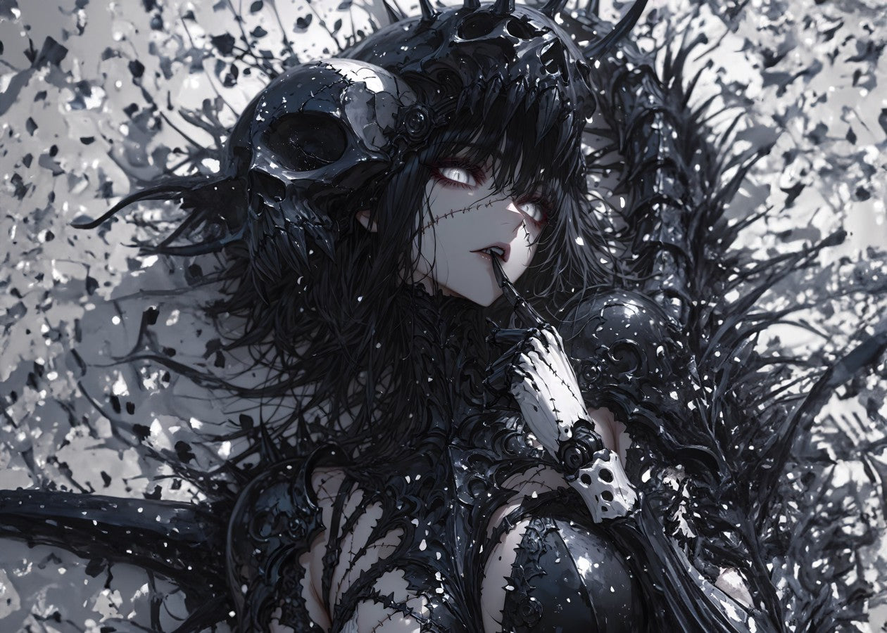 A mysterious figure enveloped in intricate, dark patterns.