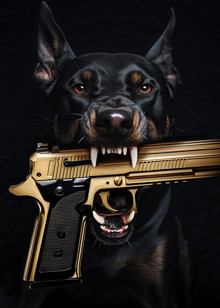 doberman with gun