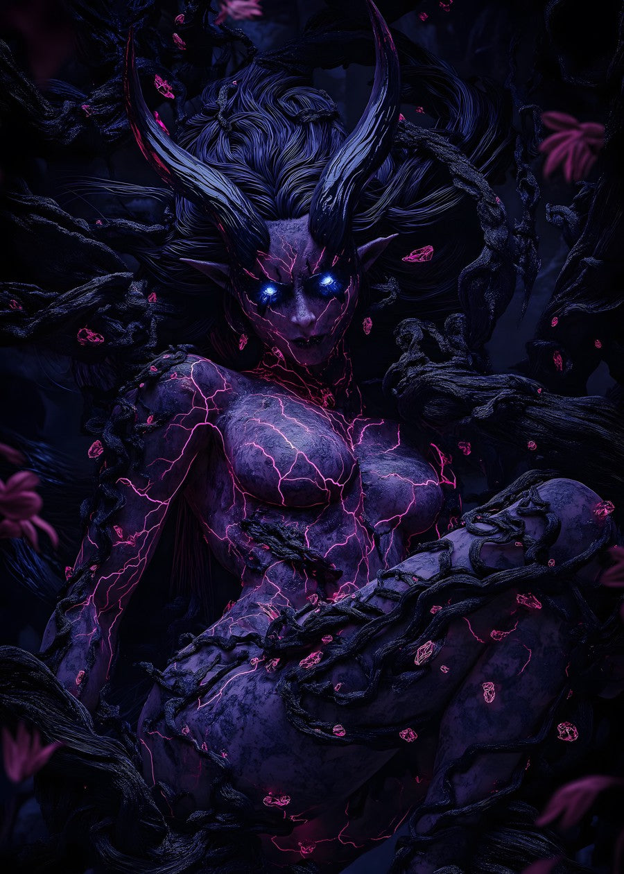 A mystical figure entwined in vines, glowing with ethereal energy.