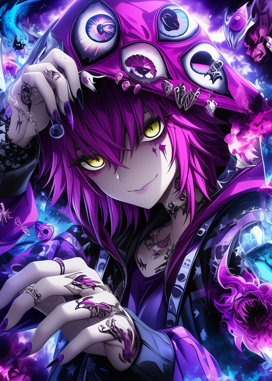 A vibrant character with striking eyes and mystical vibes.