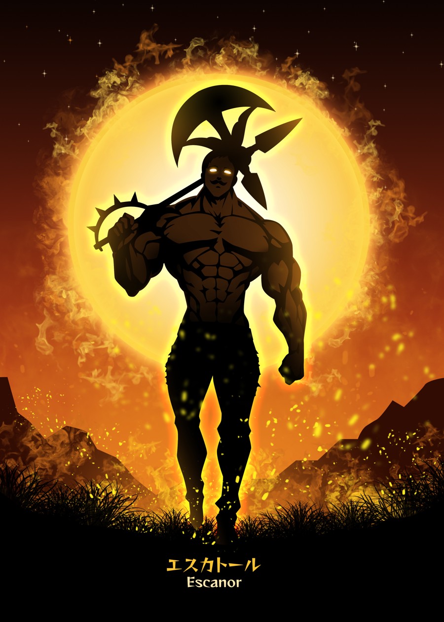 Escanor is the Lion's Sin of Pride (Raion Shin) of the Seven Deadly Sins, the former second prince of the Kingdom of Castellio, and the man known throughout the Kingdom of Liones as "The Stro
