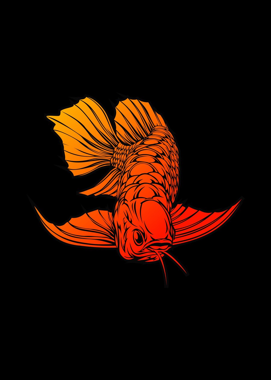 A bold and elegant fish vector illustration with striking orange-to-red gradient tones, detailed scales, and flowing fins.