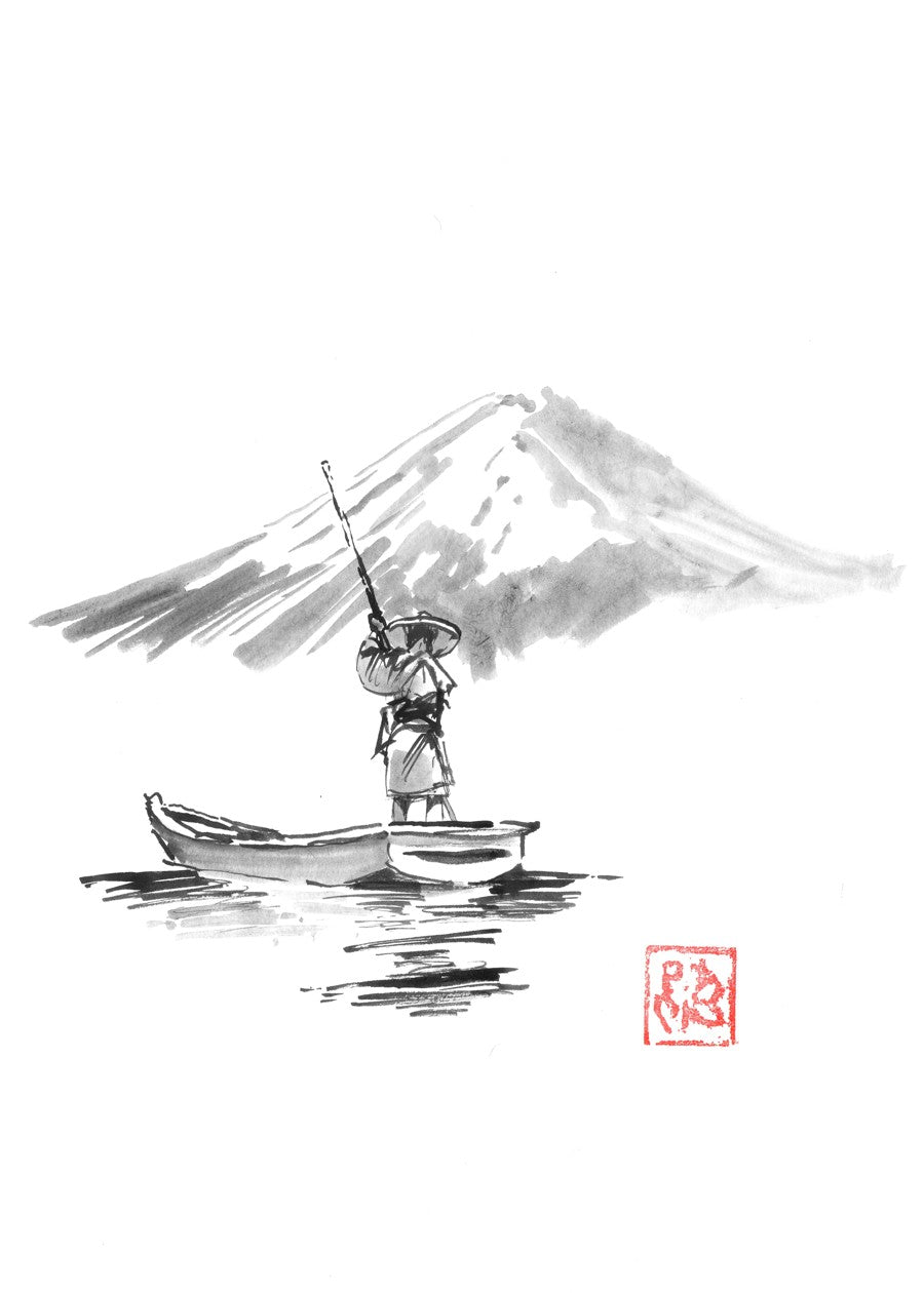fisherman in front of fuji