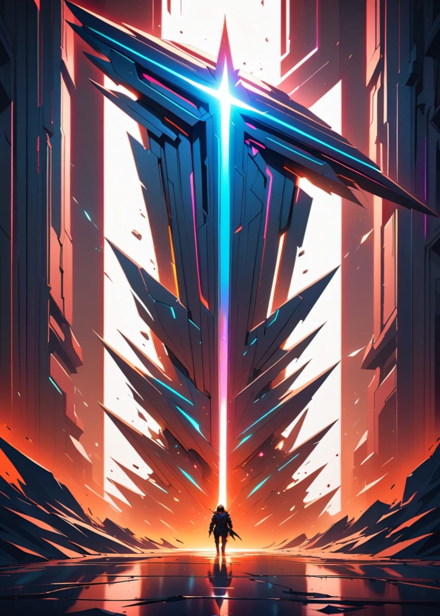 Bold, high-contrast design with dramatic lighting and 3D embossed.