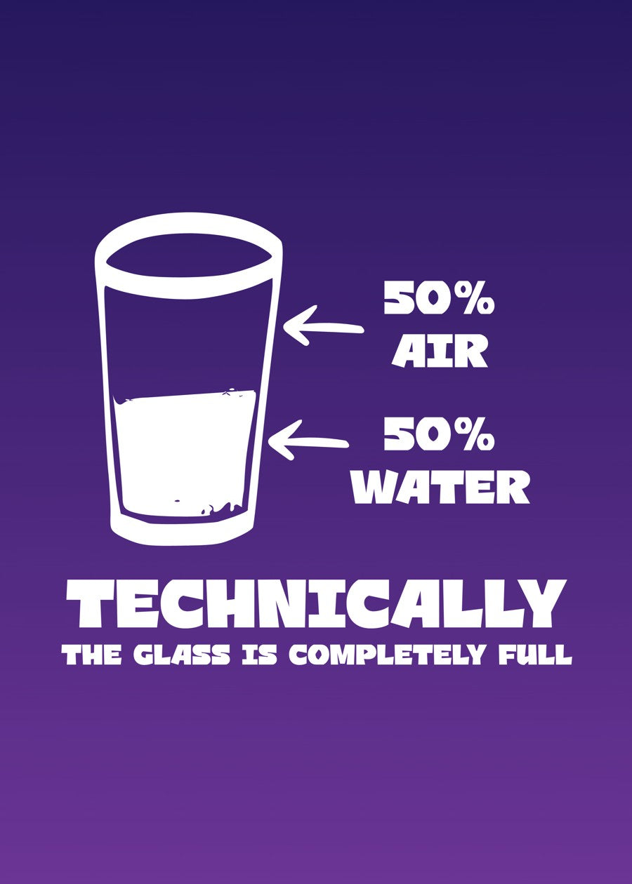 The image features a white outlined glass that is half filled with water.