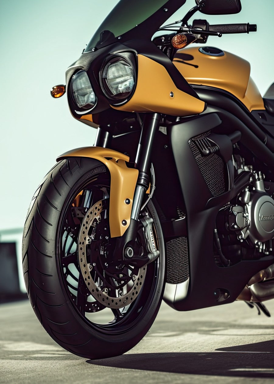 A sleek, modern sport bike with a bold yellow design. Its powerful stance and sharp lines highlight its high-performance nature, ready for a