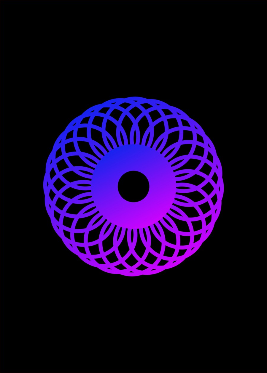 A mesmerizing geometric circle design with smooth blue-to-purple gradient tones on a black background.