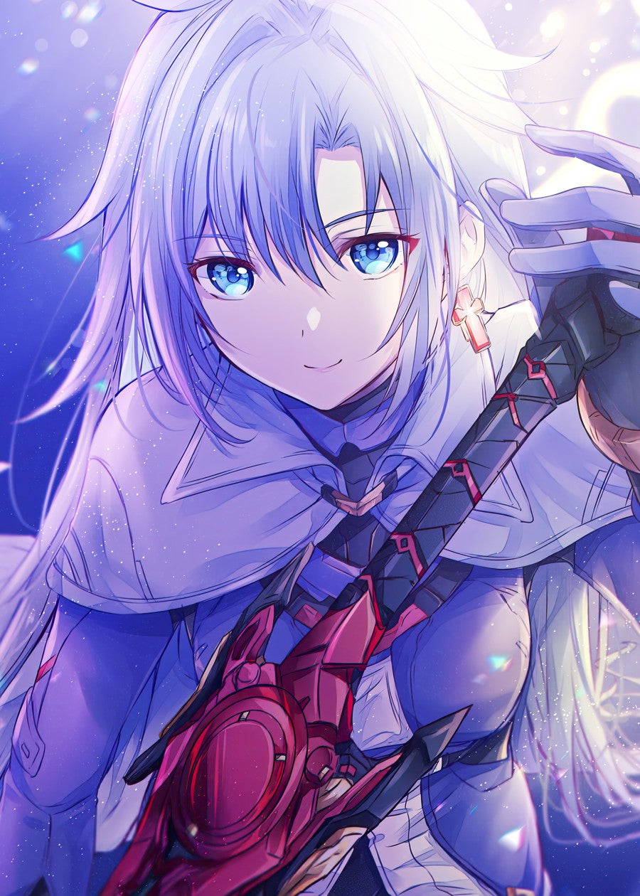With eyes as sharp as her blade and hair flowing like a winter storm, she's ready for anything.