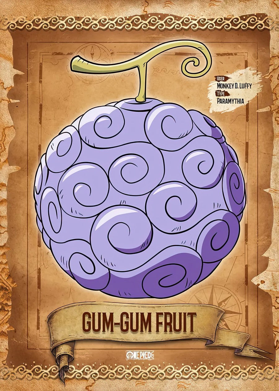 The Gomu Gomu no Mi, also known as the Gum-Gum Fruit, is a Devil Fruit in the One Piece universe. It allows the user's body to become rubber, granting them significant stretching and elastic abilities. While initially classified as a Paramecia type, it was later revealed to be a Mythical Zoan type, specifically the Hito Hito no Mi, Model: Nika. This means the user can transform into the legendary Sun God Nika, gaining his rubbery abilities.