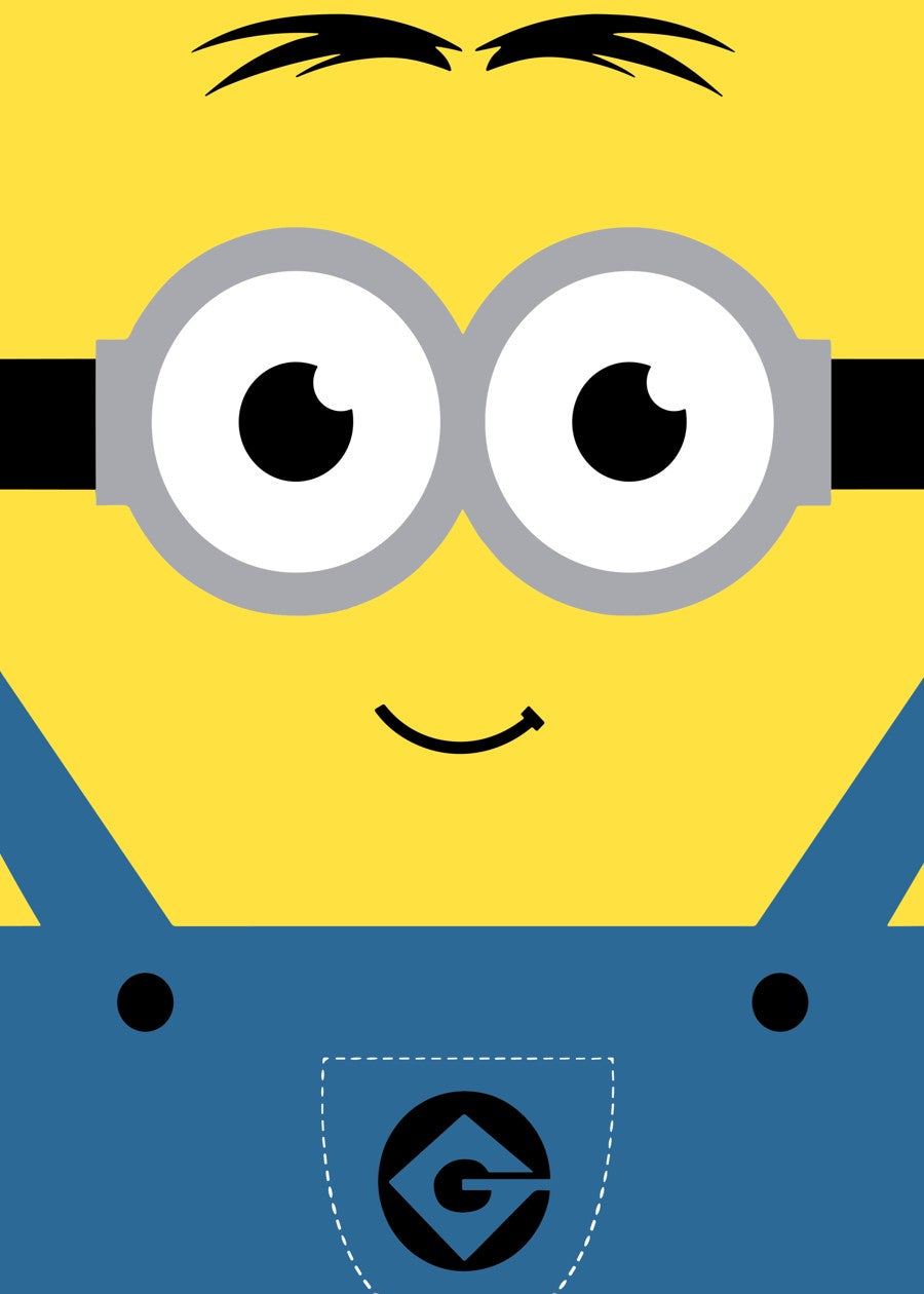 cheerful Minion's face with goggles and a blue overall, set against a vibrant yellow background. The image focuses on its smiling expression.