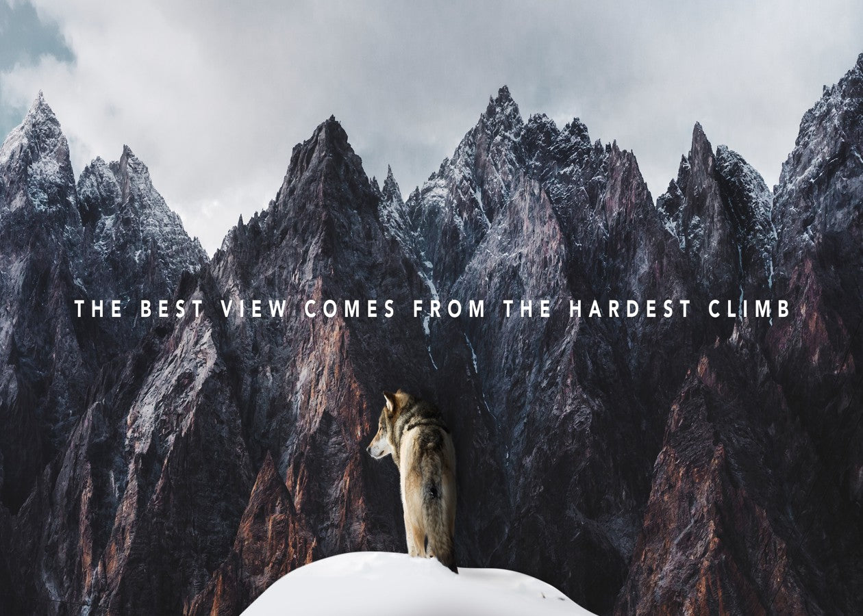 Inspirational mountain quote – 'The best view comes from the hardest climb'.