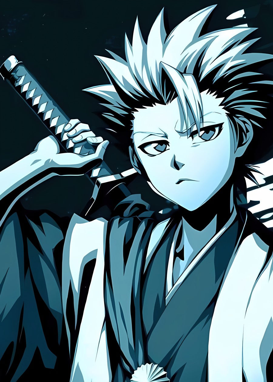 Toshiro Hitsugaya stands poised with his sword, Bleach-inspired fanart