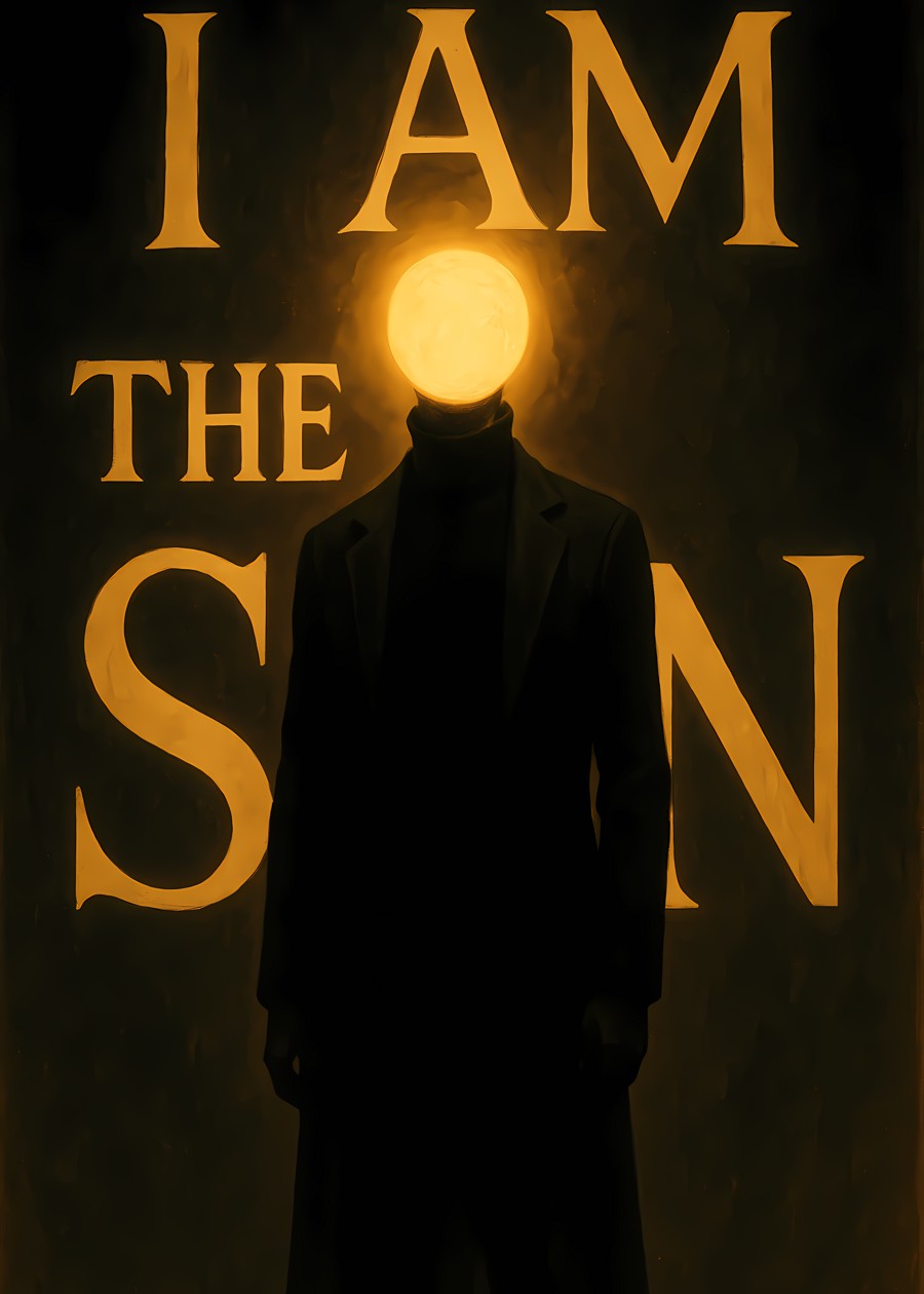 A divine silhouette with the sun for a head stands tall. Bold typography declares its truth: "I AM THE SUN."