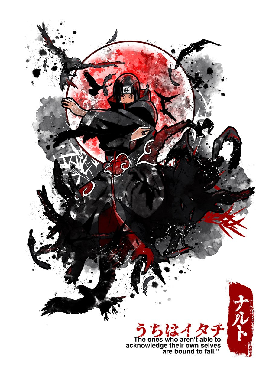 Sumi-e style design of Itachi. The design took me the whole day from the draft post including the background ink.