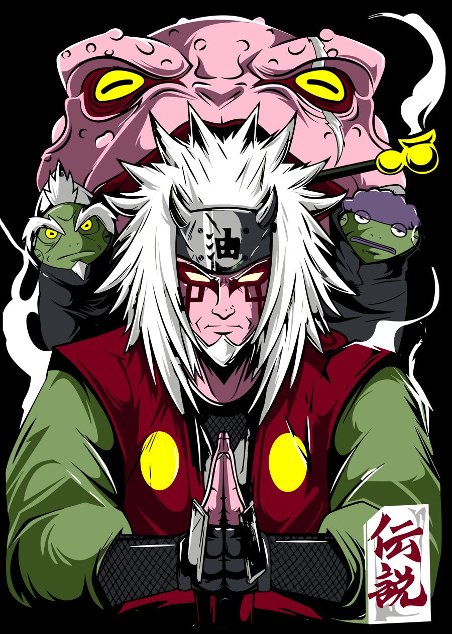 Jiraiya is a fictional character in the Naruto manga and anime series created by Masashi Kishimoto. Introduced in the series' first part, he was a student of Third Hokage Hiruzen Sarutobi and one of the three "Legendary Three Ninjas"—along with Orochimaru and Lady Tsunade, his former teammates.