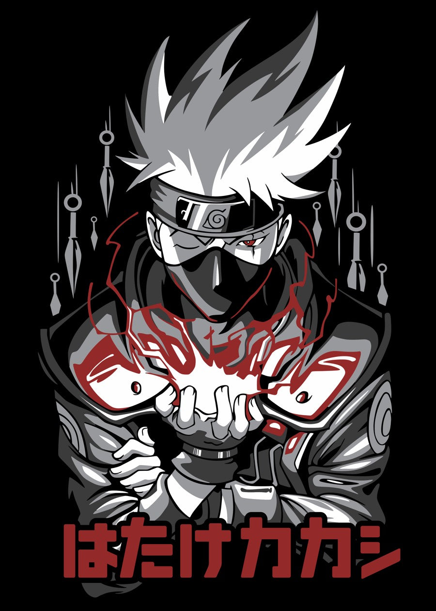 Epic anime poster of Kakashi Hatake unleashing Chidori—perfect for Naruto fans and collectors