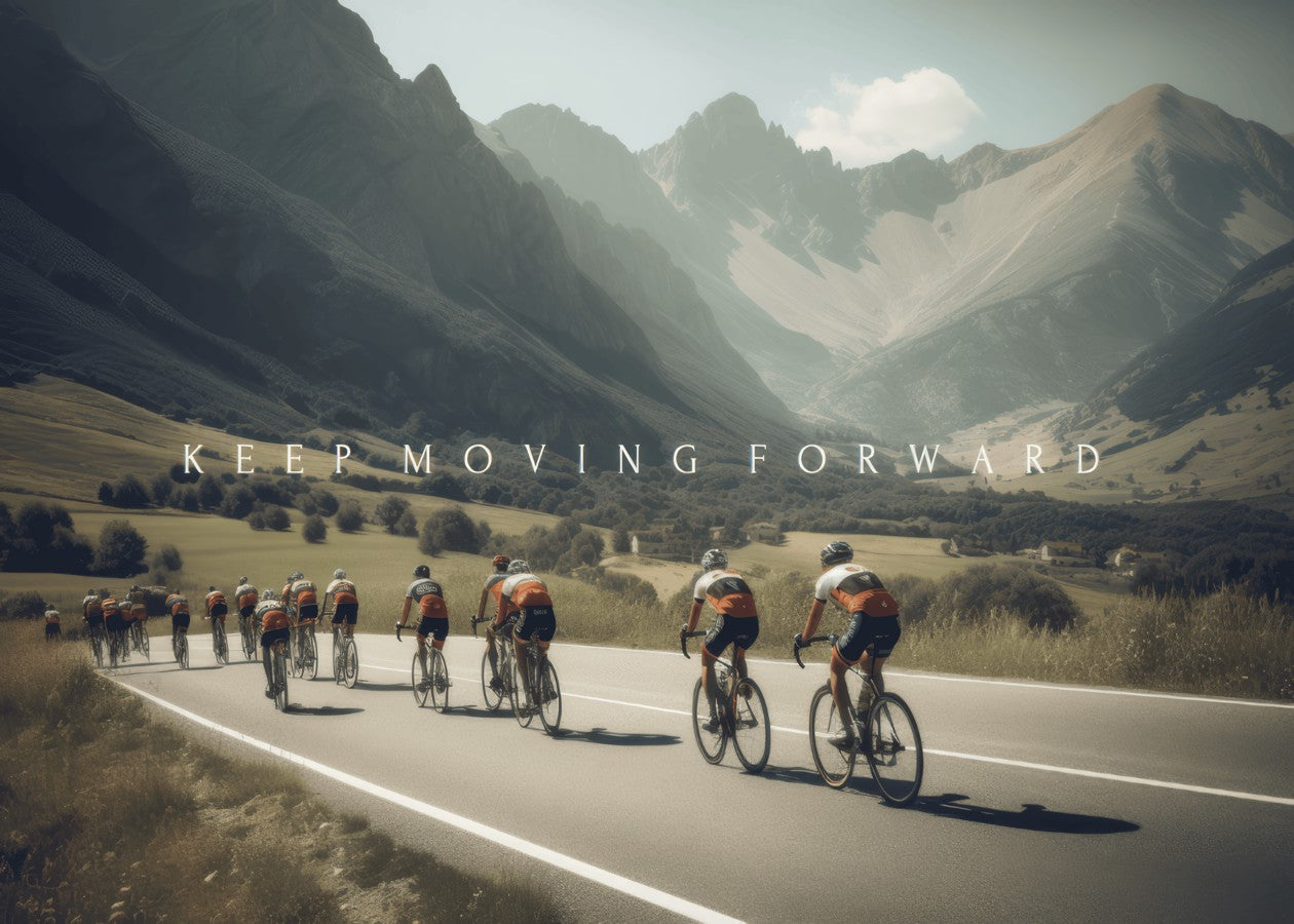 Cyclists in motion through valleys—perfect reminder to keep going no matter the terrain.