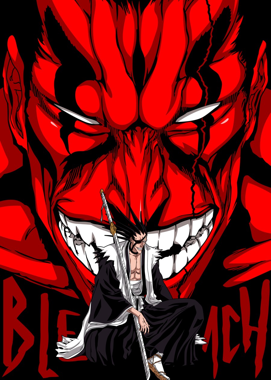 Brutal Kenpachi in his Bankai form—fierce red demonic aura and raw power. Perfect for true Bleach fans and anime warriors