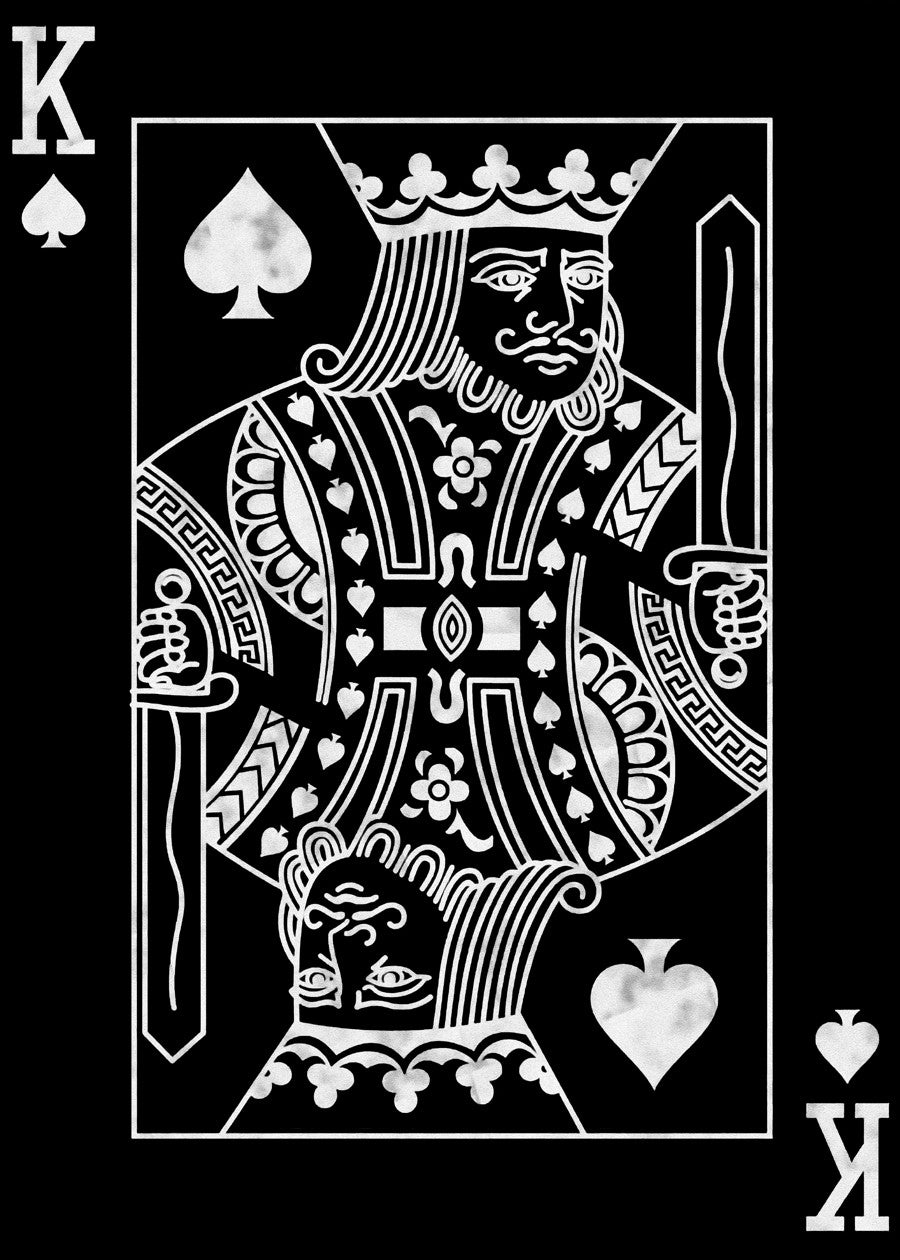 Bold black and white King of Spades card design. Iconic & classic.