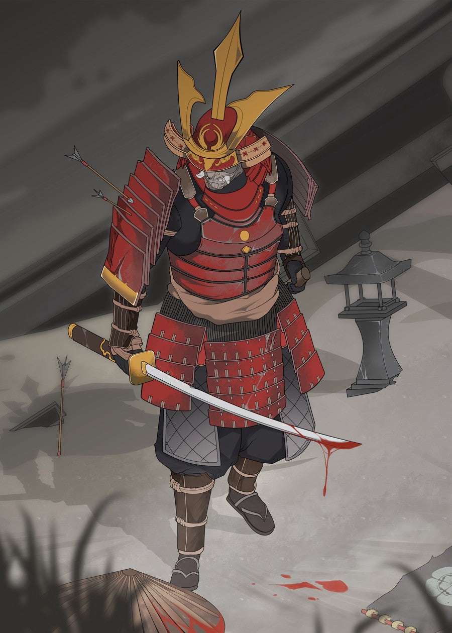 The final warrior standing proud on the battlefield, defying fate with his loyal blade.