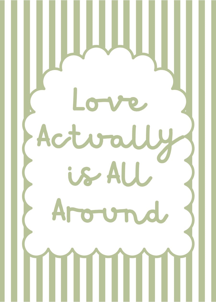 Bring a touch of romance and warmth into your space with this Love Actually Is All Around Print in soothing sage green tones.