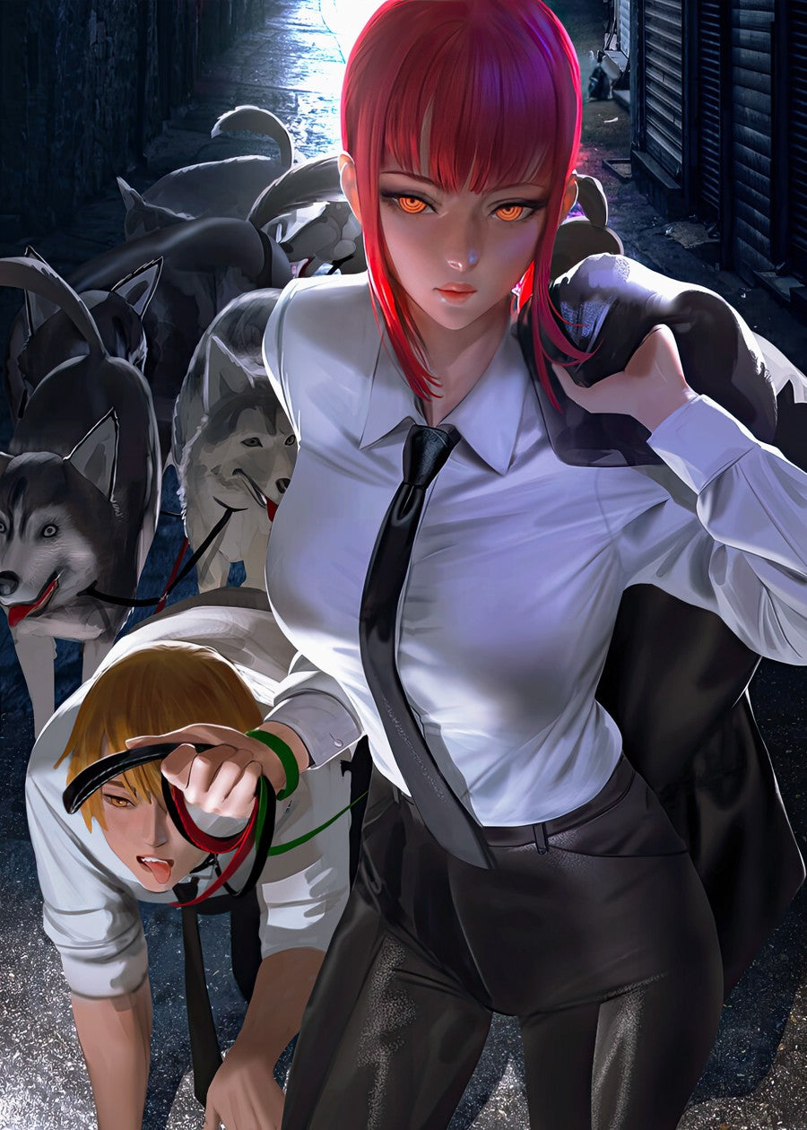 A mysterious woman with piercing eyes, auburn hair tied in a braid, and a commanding presence.