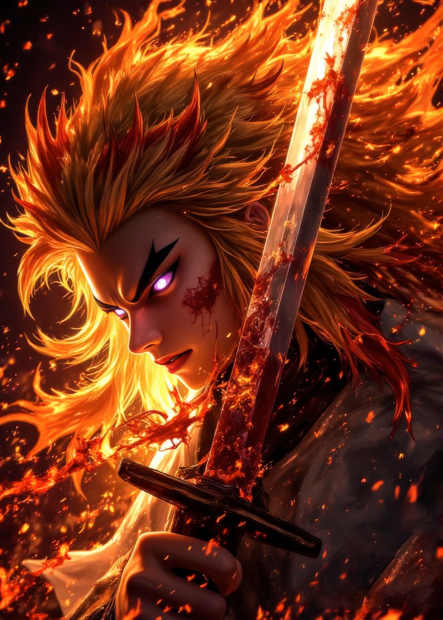 Man sword flames.