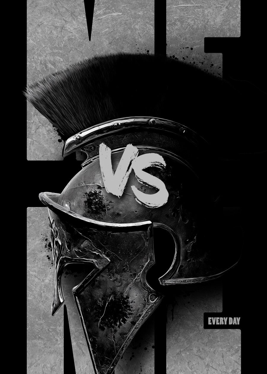 A gritty Spartan helmet is centered with "VS" on it and "EVERY DAY" below. It's a powerful message of daily struggle. #Spartan #Warrior #Mot