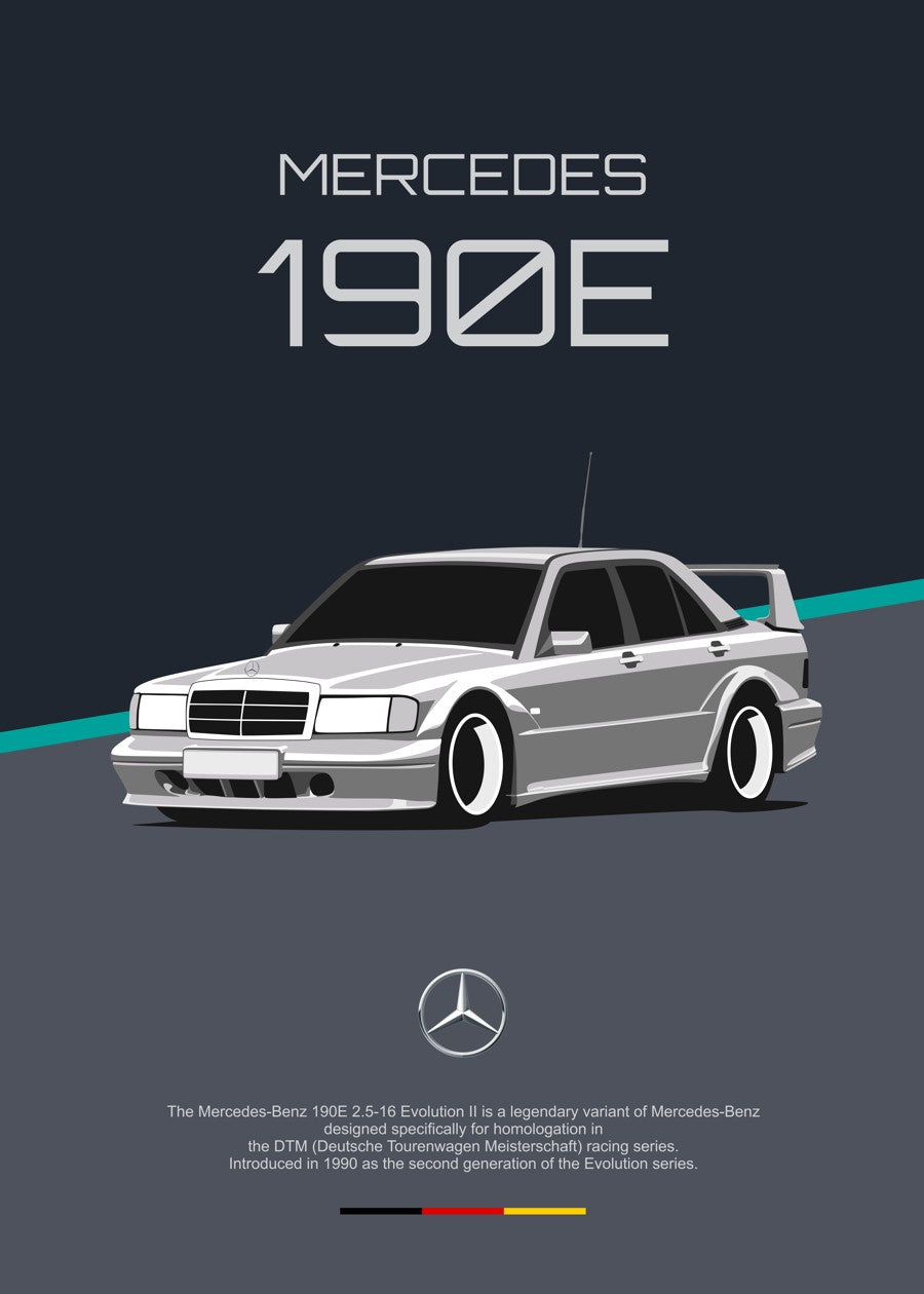 The Mercedes 190E 2.5-16 Evolution is a legendary racing sedan with high performance, aggressive aerodynamics, and motorsport history.