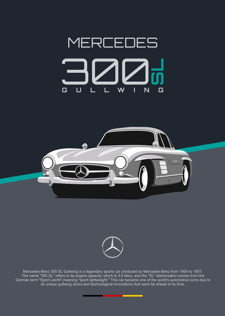 The Mercedes-Benz 300 SL Gullwing, with its iconic doors, fuel injection engine, and elegant design, stands as a timeless automotive legend.