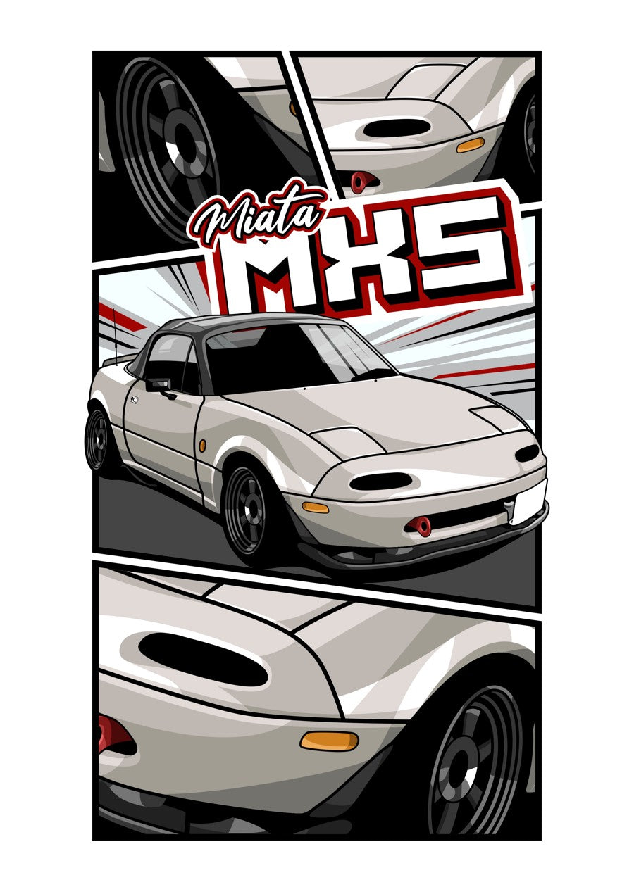 A dynamic comic-style tribute to the legendary Mazda MX-5 Miata.