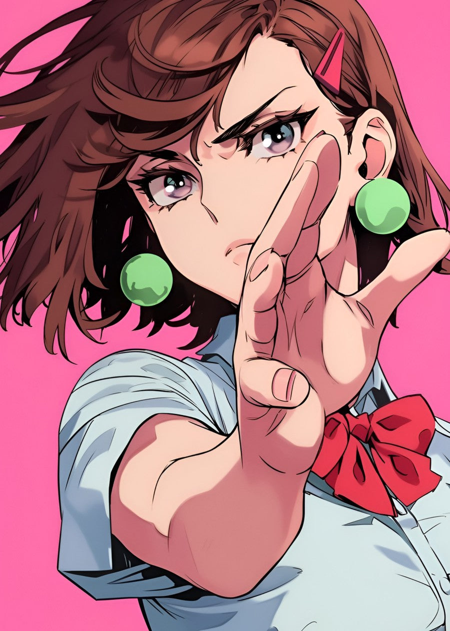 Momo Ayase is a teenage girl of average height with medium-length auburn hair that mostly frames the right side of her face and brownish crimson eyes.