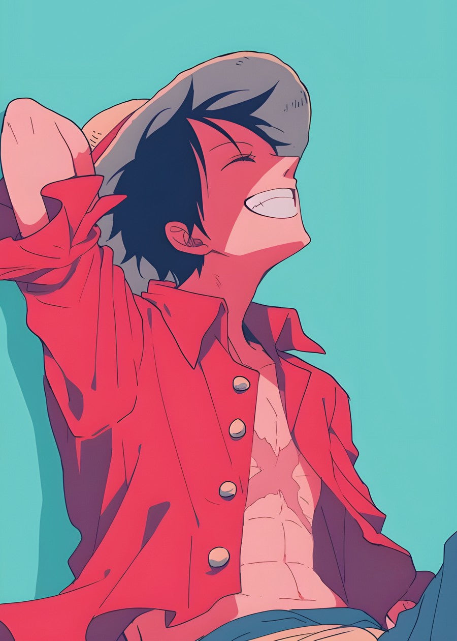 Monkey D. Luffy, a character from the popular anime series One Piece. Luffy is depicted from the mid-chest up, leaning back with a relaxed.