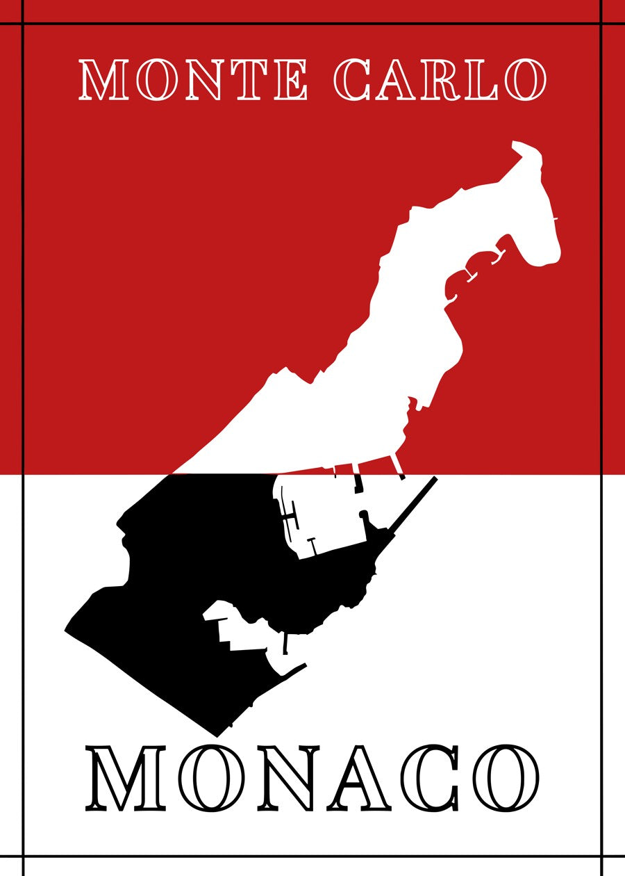 Artistic depiction combining Monaco’s city silhouette with the world-renowned street circuit, highlighting the glamorous and historic location.