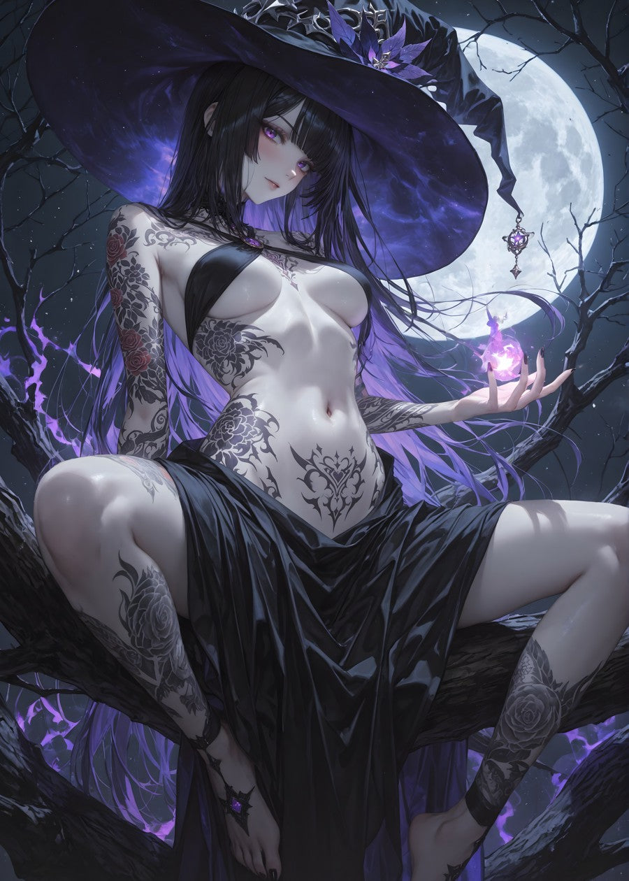 A mystical sorceress under the full moon, surrounded by arcane energy.