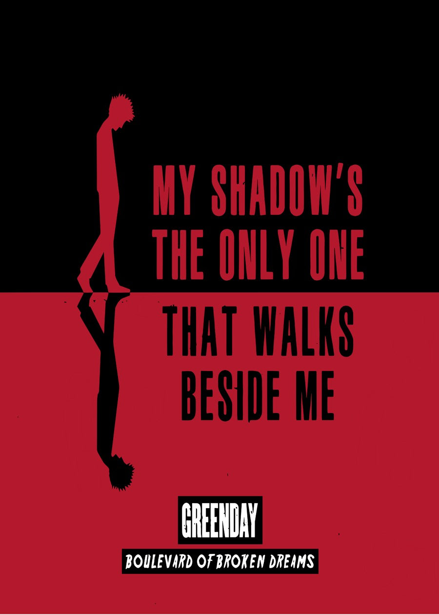 A moody, introspective design referencing Green Day’s song “Boulevard of Broken Dreams,” with a solitary figure and its shadow.