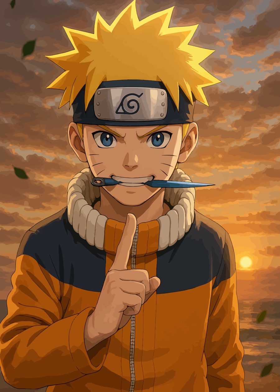 portrait of naruto uzumaki with sunset background
